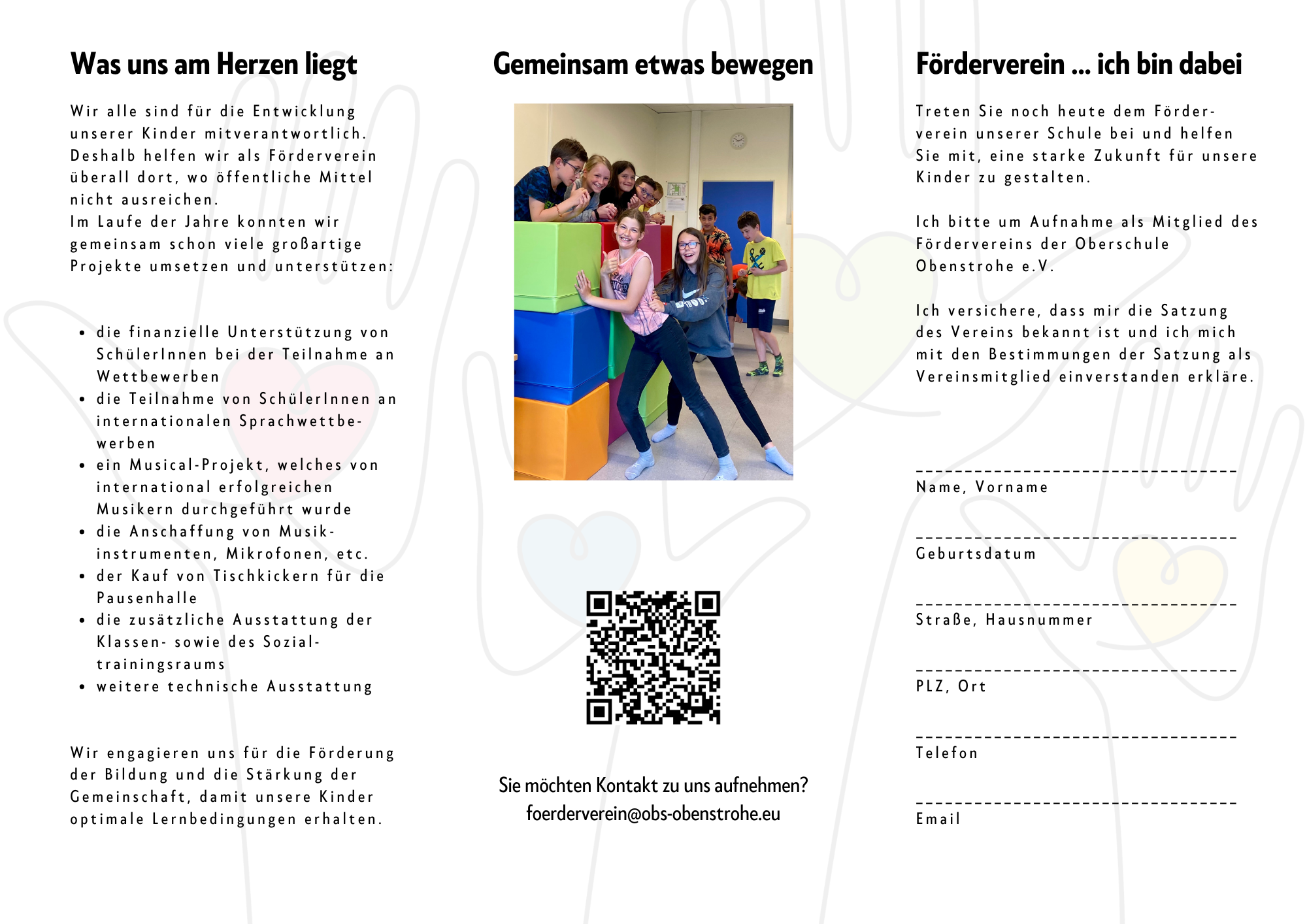 Der Förderverein der Oberschule Obenstrohe unterstützt die Schule bei vielen Projekten und Veranstaltungen aber auch bei Anschaffungen, die nicht vom üblichen Schuletat abgedeckt werden können.
